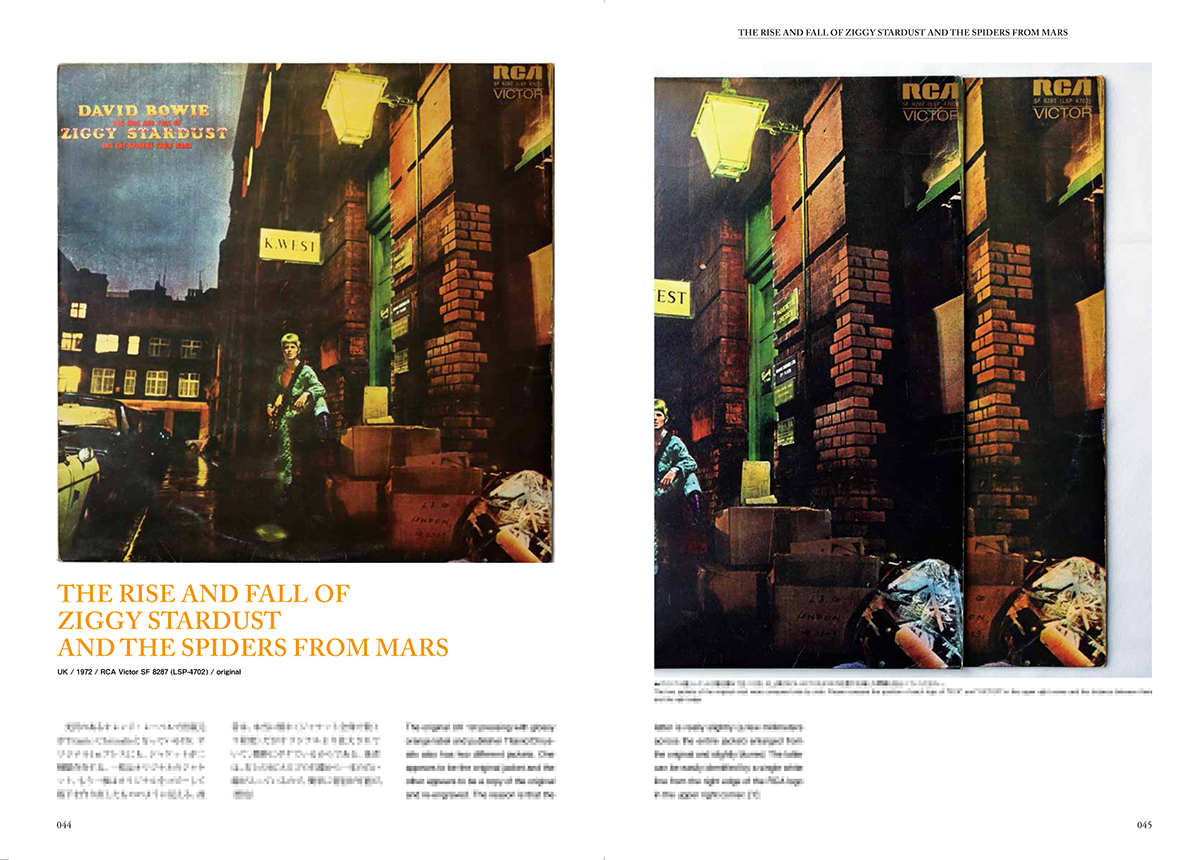 英・米・日を主とした各国盤からコレクター垂涎の超希少盤まで、オールカラー&原寸大で見せる世界初のボウイのレコード図録
