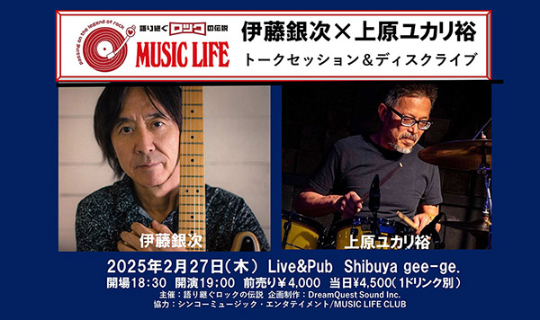 伝説のバンドで活躍し続けた2人、伊藤銀次と上原ユカリ裕のトークセッション&ディスクライヴ、2/27(木)開催。音楽人生とロック伝説を語り尽くす!
