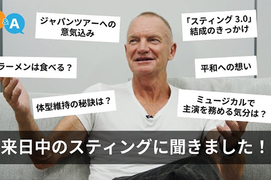 ジャパン・ツアーが盛況のうちに終了したスティングの、日本滞在中に撮影されたインタビュー動画がYouTubeにて公開中