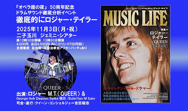 11/3(月)開催の「徹底的にロジャー・テイラー」、チケットは残りわずか! 『オペラ座の夜』のドラムサウンドを徹底分析!