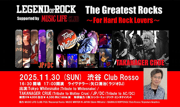 11月30日(日)渋谷Club RossoにてLEGEND OF ROCK〜For Hard Rock Lovers〜開催! AC/DC、ホワイトスネイク、モトリー・クルーのトリビュート3バンドが出演!