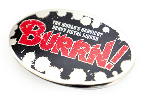 ボトルのBURRN!エンブレムがメタリック感そのままに缶バッジになりました! 巾70㎜ラージサイズのメタルバッジはインパクト抜群! 1本ご購入につき、先着100名様にバッジおひとつプレゼント!