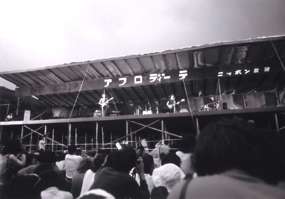 ロック界のレジェンドとして世界的名声を誇ったピンク・フロイドの初来日公演としても知られる、伝説のロック・フェス『箱根アフロディーテ』。その会場になったのは、箱根芦ノ湖畔にあって成蹊学園の寮になっている約6万坪の乗風台。広大な敷地の一部にメインステージを設け、数百メートル離れた窪地にやや小さいステージを作って、それぞれ山ステージ、谷ステージと呼んで、並行的に演奏がおこなわれた。イベントにはピンク・フロイドのほかにも日本側からハプニングス・フォー、モップス、赤い鳥、ダークダックス、渡辺貞夫グループをはじめ10数アーティストが参加。海外からは「トレイン」がヒット中だったバブルガム・ロックの人気バンド “1910フルーツガム・カンパニー” や、「サークル・ゲーム」がチャートインしていたフォーク・シンガーのバフィー・セントメリーも出演した。
