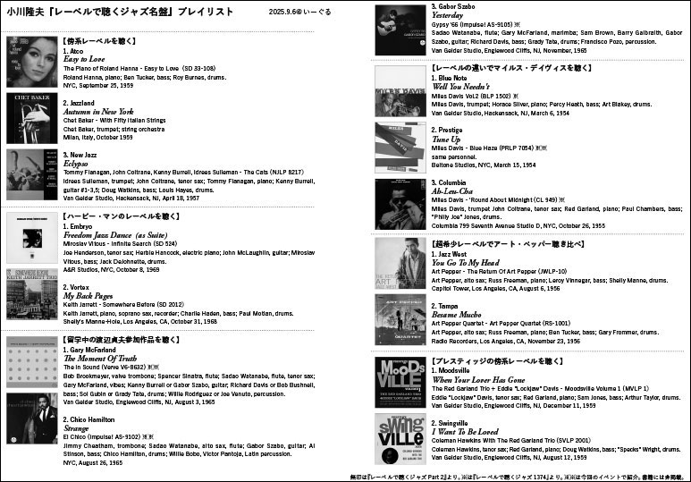 『レーベルで聴くジャズ名盤 Part 2』刊行イベントが9月上旬、