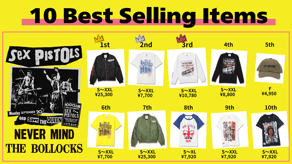 セックス・ピストルズの結成50周年を記念しての東京・原宿でポップアップ・ショップは残念ながらもう終了してしまいましたが(11月4日MLCニュース)、そこでの売れ筋商品やピストルズの結成50周年記念グッズがオンライン販売されることになりました。チャンスを逸していた皆さん、今度のこの機会はお見逃しなく!