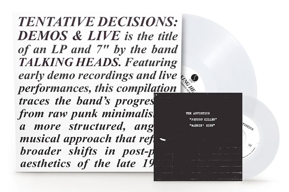 今回リリースされた初期のレア音源を集めたコンピレーション・アルバム『Tentative Decisions』(タイトルはデビュー・アルバム収録曲にちなんでつけられている)は、後にバンドの最初の2枚のアルバム1977年の『Talking Heads:77』(邦題『サイコ・キラー'77』)と1978年の『More Songs About Buildings and Food』(邦題『モア・ソングス』)に収録されることになる楽曲のデモ音源を中心に構成されており、ニューヨークのオーシャン・クラブでの「Artists Only」1976年のライヴ音源、そしてデヴィッド・バーンとクリス・フランツの最初のバンド、ザ・アーティスティックス名義の「Psycho Killer」と「Warning Sign」など全13曲が収録されています。このLPは、レコード・ストア・デイの2025年ブラックフライデー・イベントのためのもので、11月28日(金)より対象レコード店にて限定発売されています。