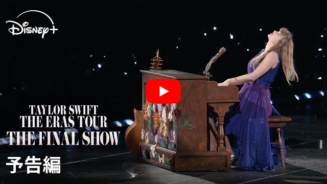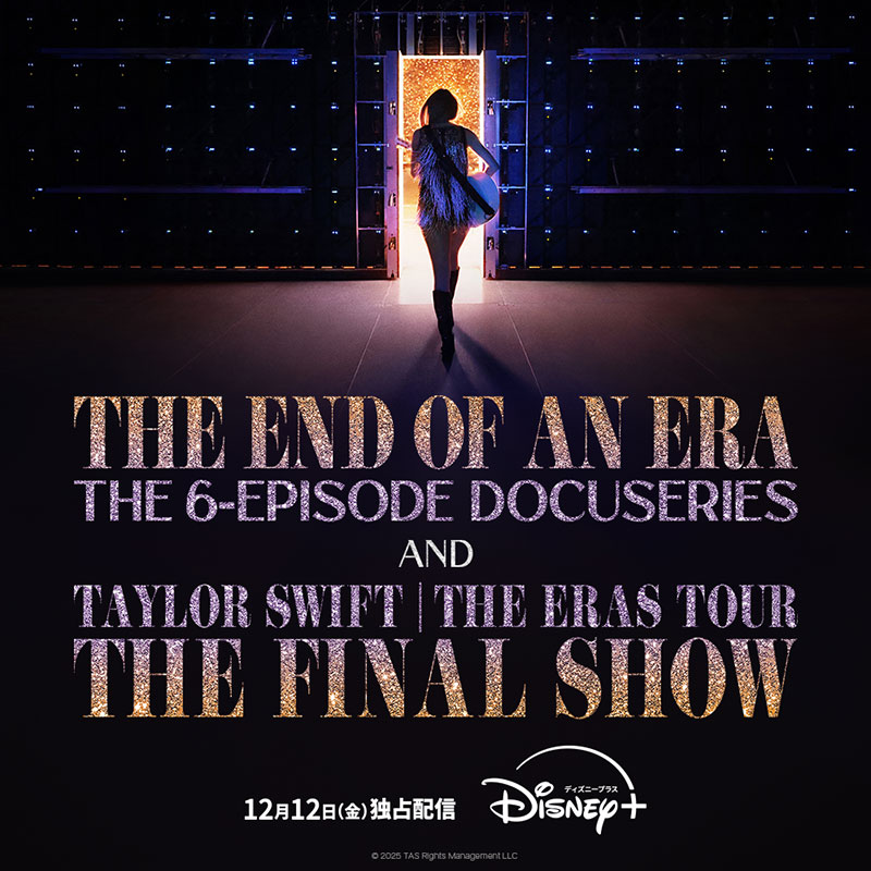 ウォルト・ディズニー・ジャパン株式会社は、ディズニー公式動画配信サービス「Disney+(ディズニープラス)」にて、14 度のグラミー賞受 賞を誇るテイラー・スウィフトの伝説のツアー「テイラー・スウィフト:THE ERAS TOUR」の舞台裏を6エピソードに渡って収めたドキュメンタリ ー・シリーズ『The End of an Era』と最終公演の様子をフルで収めた『Taylor Swift | The Eras Tour | The Final Show』を 2025 年12月12日(金)より独占配信いたします。この度、カナダ・バンクーバーで行なわれた伝説的ツアーの最終公演の様子を収録したライヴフィルム『Taylor Swift | The Eras Tour | The Final Show』の予告編が初公開となりました!