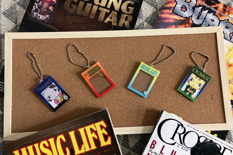 皆さんが学生の頃(もちろん今でも!)、夢中になって読んだシンコーミュージック発行の音楽情報マガジン、「MUSIC LIFE」、「CROSSBEAT」、「BURRN!」 そして 「YOUNG GUITAR」 の表紙を模したアクリル・キーチャームが誕生しました!