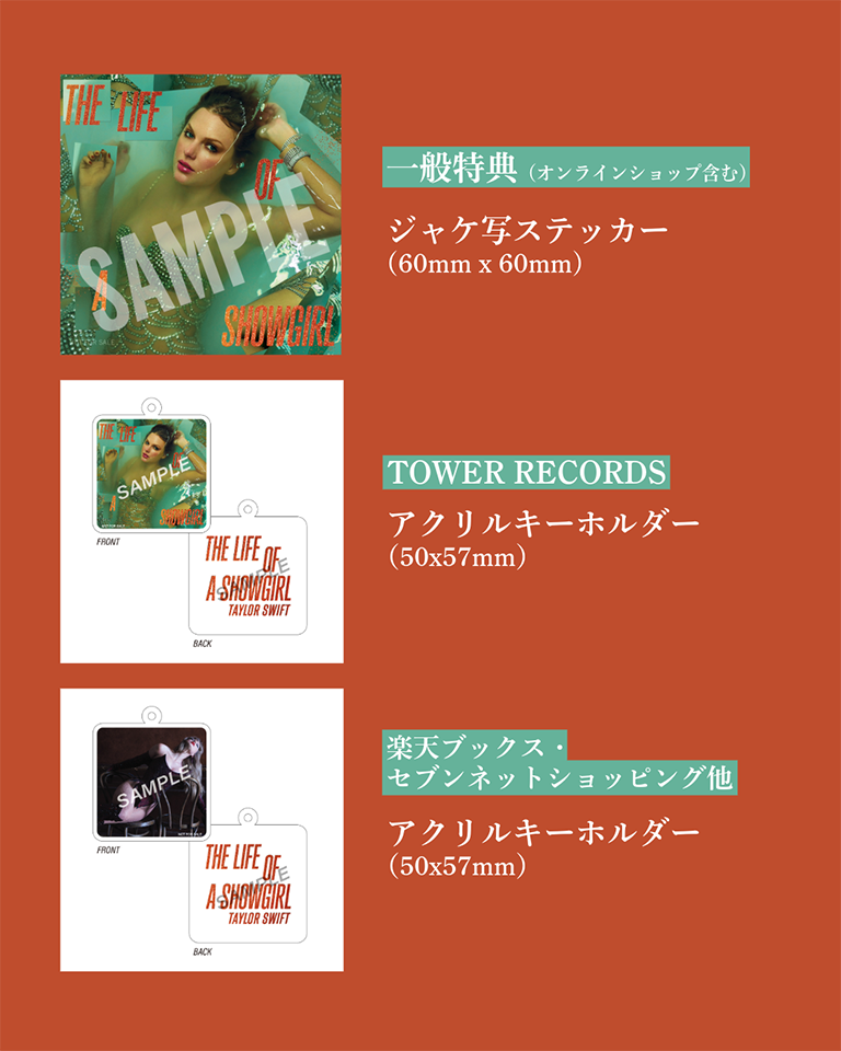 テイラー・スウィフトの最新作『ザ・ライフ・オブ・ア・ショーガール』、その国内盤がようやく本日発売になりました。3形態、そして購入特典は以下の通りです。