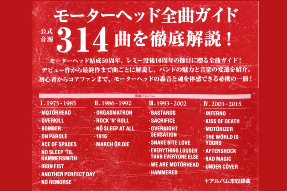 モーターヘッド、デビュー50周年、レミー没後10年となる12/24、公式音源314曲を完全網羅の『モーターヘッド全曲ガイド』発売。ポートレート付き特別販売決定!