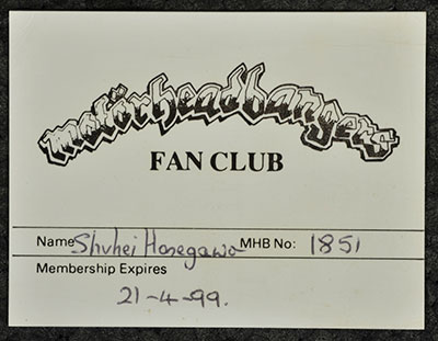 公式ファンクラブ「モーターヘッドバンガーズ」の会員証と会報です。入会したのは1998年。当時はまだネットがなかったので、少しでも情報を手に入れたいと思い、入会しました。初めてイギリスから会報が届いた時は感動しましたね。