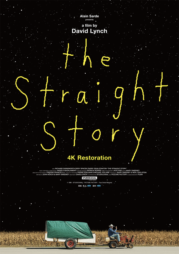 1994年、『ニューヨーク・タイムズ』紙で、73歳のアルヴィン・ストレイトが、10年来仲違いしていた兄が病に倒れたことを知り、時速8kmのトラクターに乗って6週間の旅をするという実話の記事を読んだのは、デヴィッド・リンチ作品の編集を手掛け、公私にわたるパートナーのメアリー・スウィーニー。メアリー。彼女が執筆した脚本を読み、シンプルでまっすぐな物語に心を揺さぶられ、リンチ自身が監督することを決断。1999年、カンヌ映画祭で上映されると拍手喝采で迎えられ、リンチ作品で初めて一般向けのレイティングでアメリカではディズニーが配給し、「すばらしく、忘れがたい映画」「シンプルで感動的。観客の心をとらえて離さない」などと絶賛され、世界で大ヒットした永遠の感動作。2025年1月に亡くなった、デヴィッド・リンチ自身の監修で、4Kリマスター版としてスクリーンで甦る。