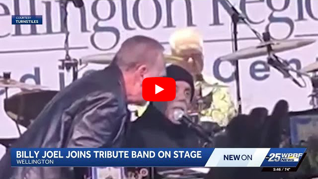 ビリー・ジョエルはフロリダ州ウェリントン──ジョエルが所有する別荘の近くにある町──で市制30周年の祝賀行事が行なわれていた1月2日の金曜日、たまたまその場に居合わせていました。出演者としてブッキングされていたジョエルのカヴァー・バンド、ターンスタイルズがステージに上がると、ジョエル本人もそこに合流し、「We Didn’t Start the Fire」(邦題「ハートにファイア」)と「Big Shot」を披露しました。