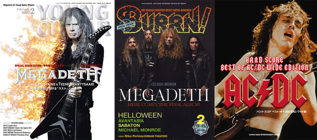 今週の新刊情報──『BURRN!』『YOUNG GUITAR』は共にメガデス巻頭特集! AC/DCのスコアも発売!