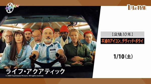 デヴィッド・ボウイ財団の初の公認作品としてリリースされ、貴重な映像が満載のドキュメンタリー『デヴィッド・ボウイ ムーンエイジ・デイドリーム』、鬼才ウェス・アンダーソン監督による海洋コメディ・ドラマで、デヴィッド・ボウイのオリジナル曲も使われるなど、音楽にたっぷりひたれる傑作『ライフ・アクアティック』の2作品を1月10日(土)に放送いたします。