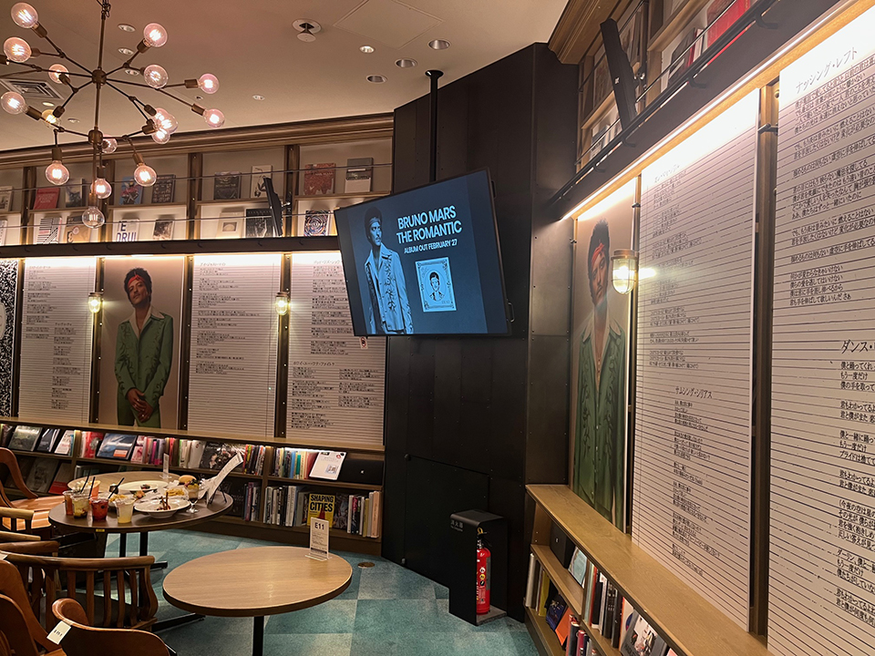 そのうちの1ヶ所、SHIBUYA TSUTAYAでは、アルバム・リリースに合わせ本日2/27からブルーノ・マーズの新作をテーマにしたコラボレーション・カフェ、その名も「BRUNO MARS CAFÉ」がスタートした。3/15(日)まで開催されるこのコラボレーション・カフェでは、『ザ・ロマンティック』のアートワークを再現した内装や収録曲にちなんだオリジナル・ドリンクが楽しめる他、利用者にはこのコラボレーション・カフェ限定の特典がプレゼントされるなどファンには堪らない内容となっている。