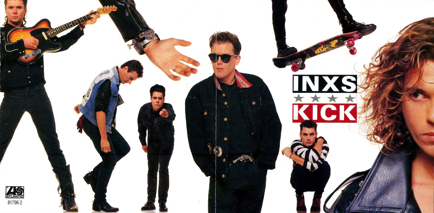 ※INXSの代表作であり歴史的ヒット作『Kick』(1987年)のアルバム・カヴァーとバック・カヴァー。