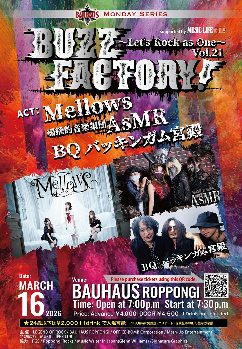 “ROCK”を楽しむことをコンセプトに国籍・年齢・性別の壁を取り払ってロックを楽しむ “Buzz Factory!~Let's Rock as One~”。Vol.21は3/16(月)六本木BAUHAUSにて開催!