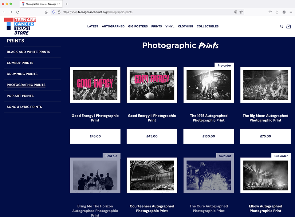 上記のシルクスクリーンはロイヤル・アルバート・ホールで展示されるのと同時に、被写体である各アーティストたちのサイン入りで独占販売されることになっており、その全収益はTCTに寄贈されます。全出品作と販売の詳細についてはこちらをご覧ください。
