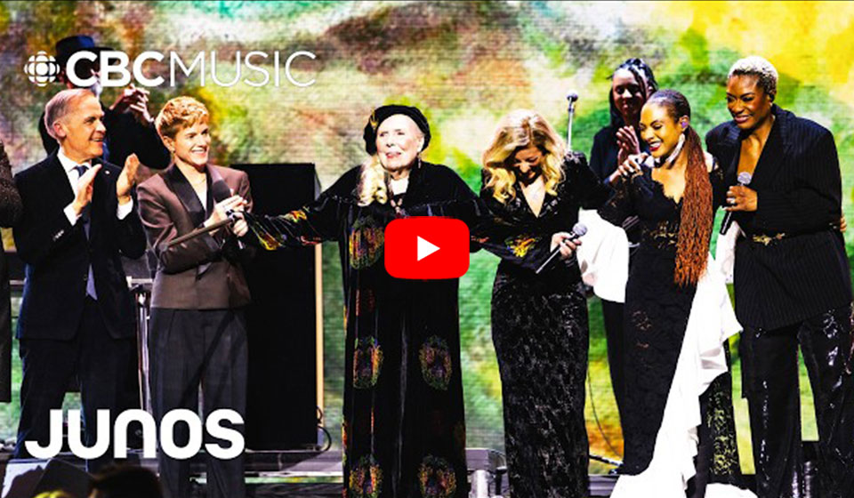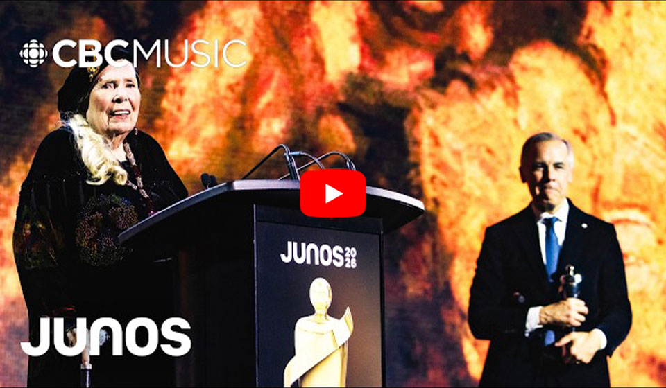 3月29日、カナダ音楽界最高権威の音楽賞、ジュノー賞の2026年度授賞式がオンタリオ州ハミルトンのTDコロシアムで開催されました。今年の授賞式ではライフタイム・アチーヴメント賞を贈られたジョニ・ミッチェルが珍しく公の場に姿を現わし、サラ・マクラクランやアリソン・ラッセルらが彼女の楽曲のメドレーを披露する中、自らマイクを取って楽しげにその輪の中に加わり、観客からの温かい拍手と歓声を浴びていました。