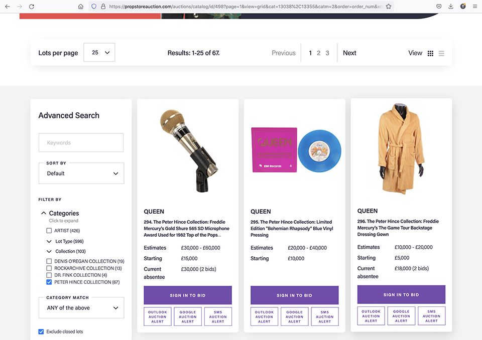 様々な有名ミュージシャンたちの貴重なメモラビリアがオークションに。目玉はクイーンのロードクルーを務めたピーター・ヒンスの秘蔵コレクション