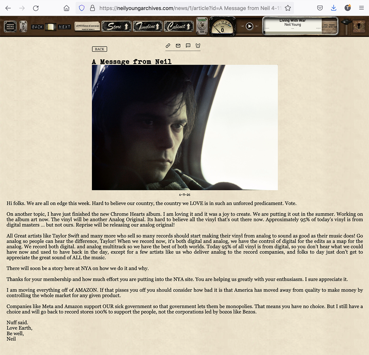 ▲ニール・ヤング公式HP『Neil Young Archives』より